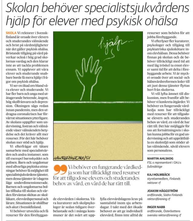 Skolan behöver specialistsjukvårdens hjälp för elever med psykisk ohälsa