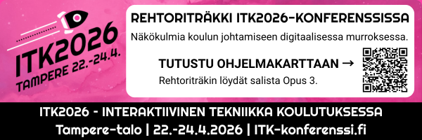 ITK2026-konferenssin ohjelmassa on mukana oppilaitosjohdolle suunnattu kaksipäiväinen rehtoriträkki, joka kokoaa puheenvuoroja koulun johtamisesta digitaalisessa murroksessa ja tarkastelee, miten digitalisaatioon, tekoälyyn ja sääntelyyn liittyvät muutokset voidaan viedä hallitusti osaksi koulun arkea.